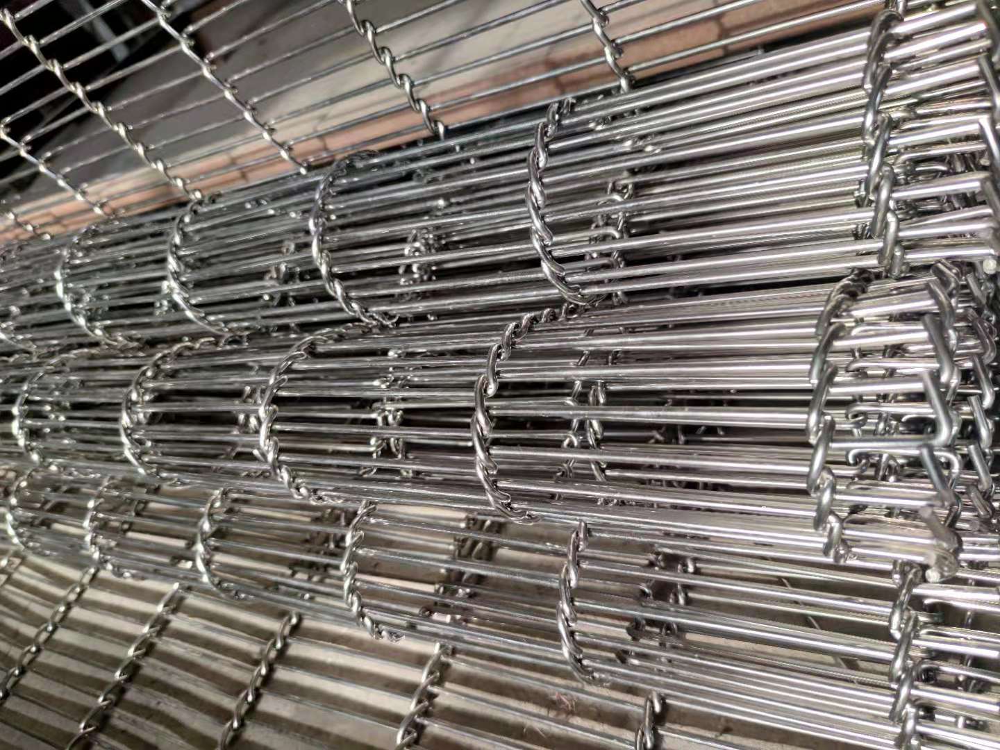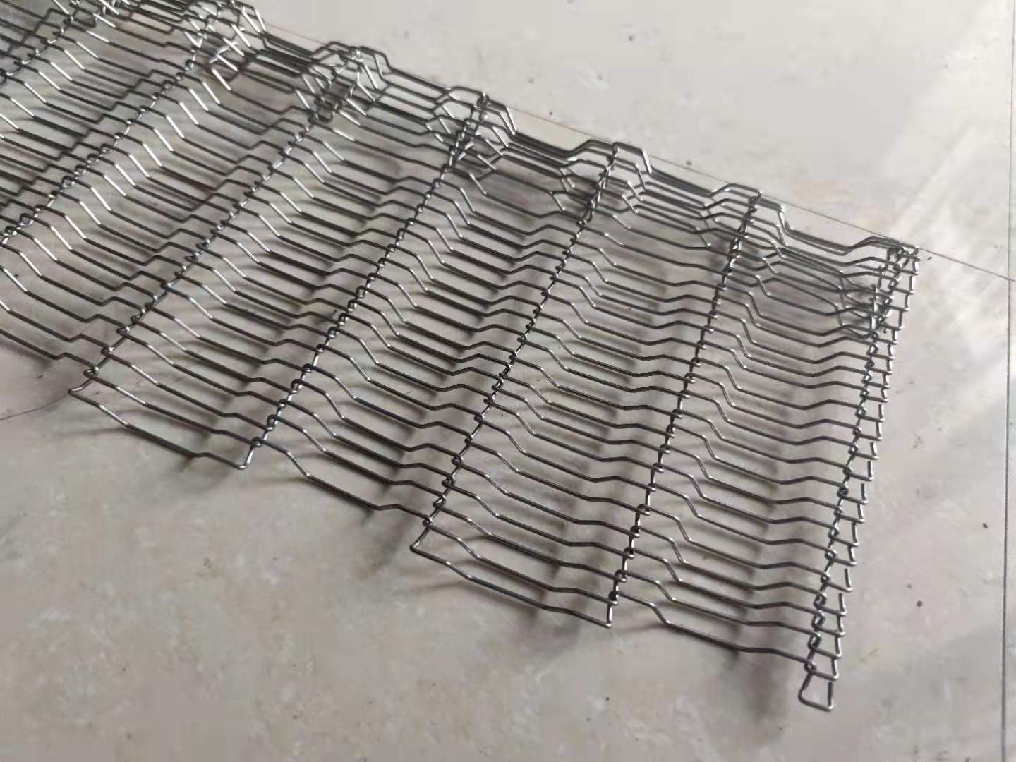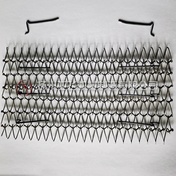 粉末冶金燒結(jié)網(wǎng)帶是多用于粉末冶金制品燒結(jié)爐,將同一方向的螺線(xiàn)交互編入,在交叉處把力骨線(xiàn)穿過(guò)去的型式。