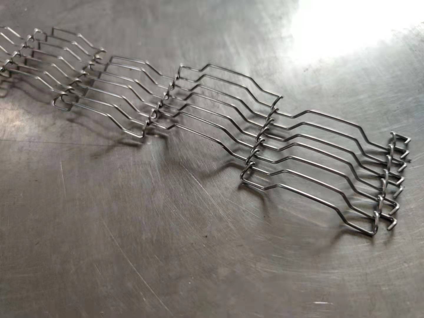 粉末冶金燒結(jié)網(wǎng)帶是多用于粉末冶金制品燒結(jié)爐,將同一方向的螺線交互編入,在交叉處把力骨線穿過去的型式。